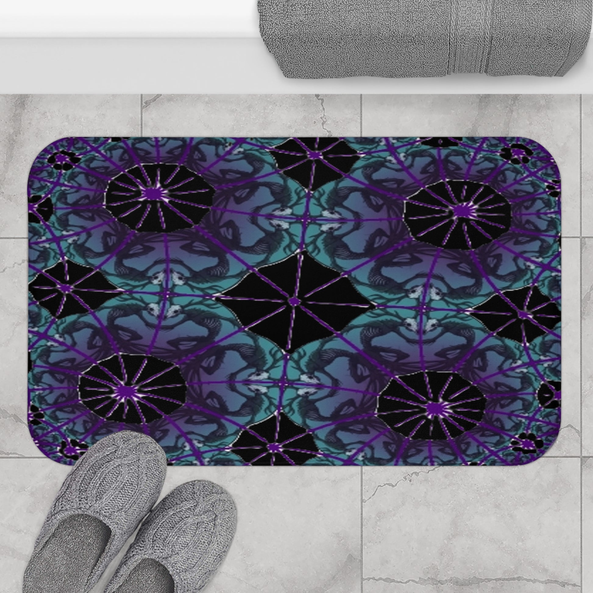 Transform your bathroom into a cozy oasis with this beautifully designed Black Kaleidoscope Wendigo Bath Mat. Crafted from 100% memory foam microfiber, it provides the ultimate comfort underfoot, making your bathroom routine a delight. The anti-slip backing ensures that the mat stays securely in place, reducing the risk of slips and falls. Perfect for those seeking a blend of style and safety in their home decor, this bath mat fits seamlessly into any bathroom aesthetic. It's an excellent gift for housewarmings, holidays, or to elevate your own daily rituals. Celebrate your love for style and comfort, especially during festivities or special occasions!