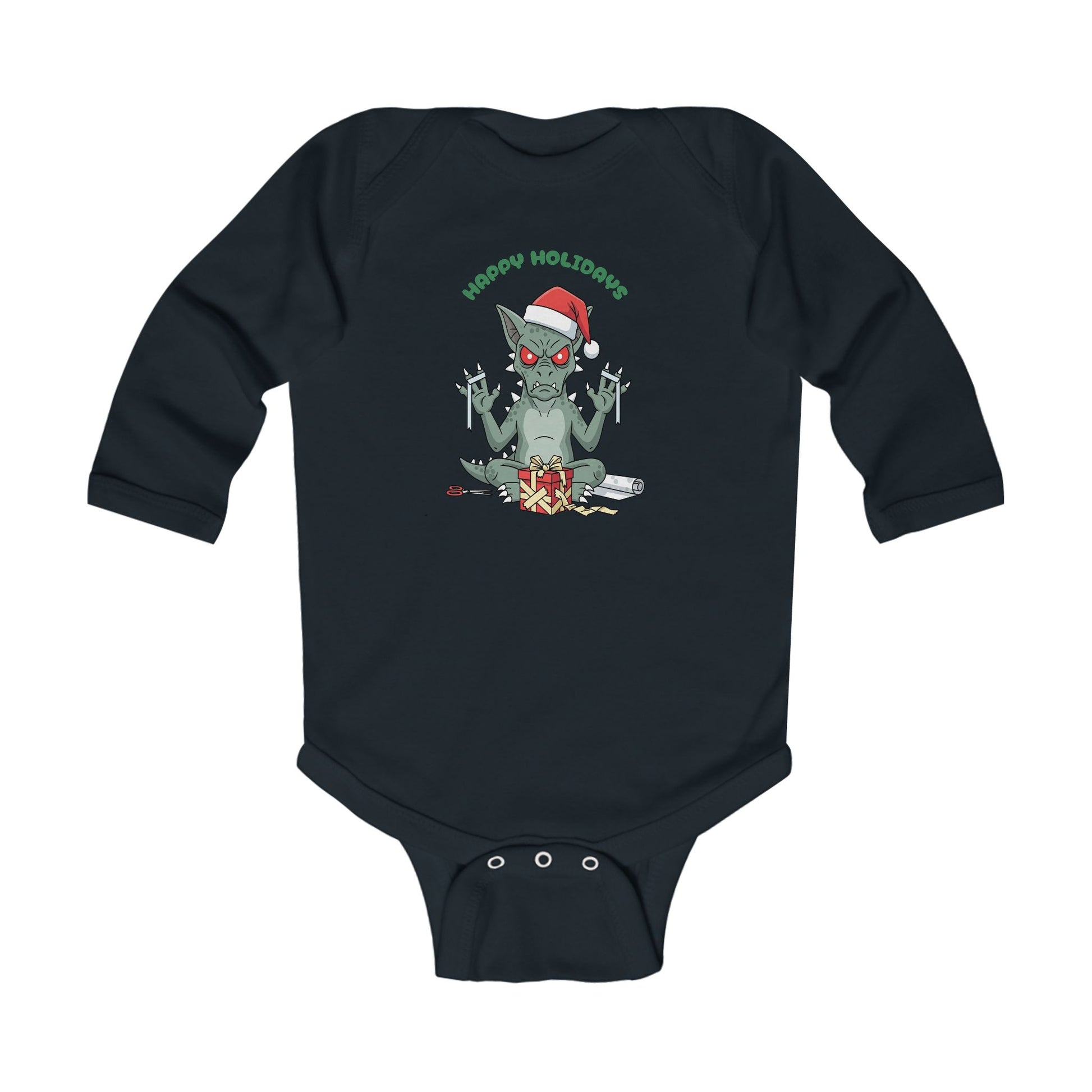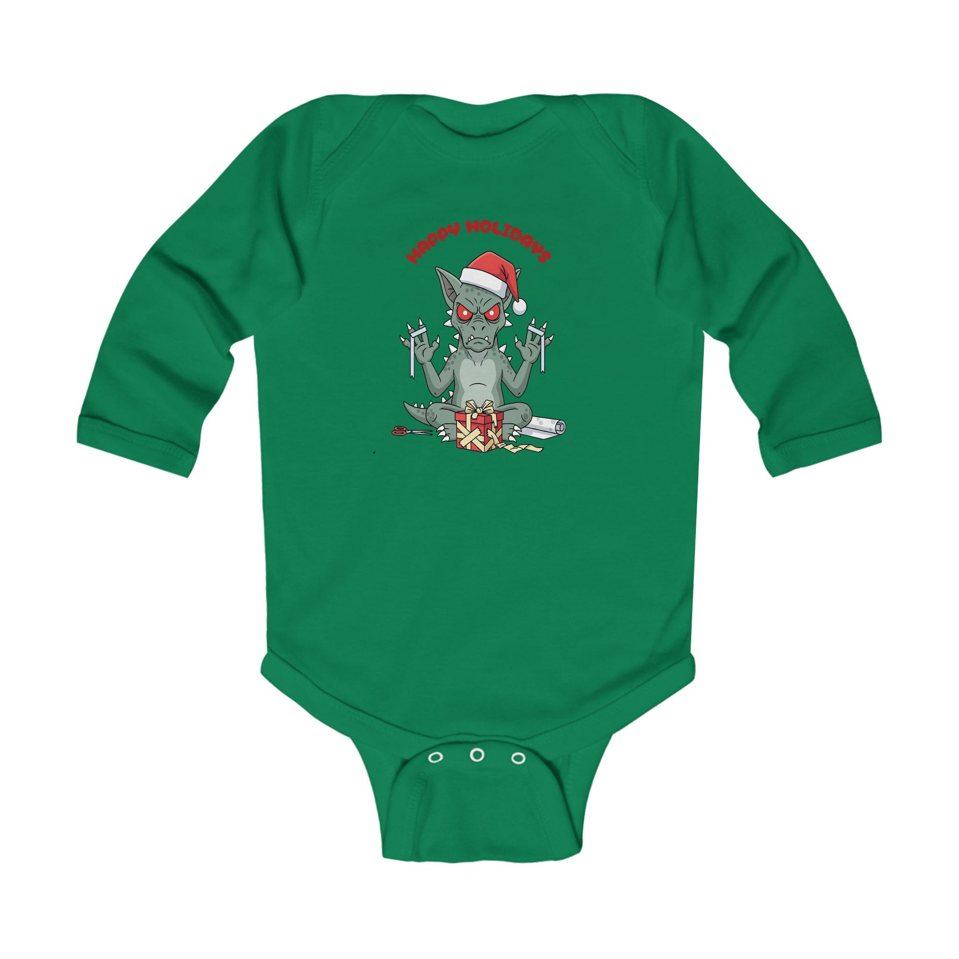 This Chupacabra Christmas Onesie is perfect for the holiday season, adding a touch of festive fun to your little one's wardrobe. Made from soft and lightweight fabric, this onesie features ribbed knit binding for comfort and 3 snaps for easy closure. The 100% combed, ring-spun cotton composition ensures a classic fit that is perfect for infants celebrating their first Christmas.