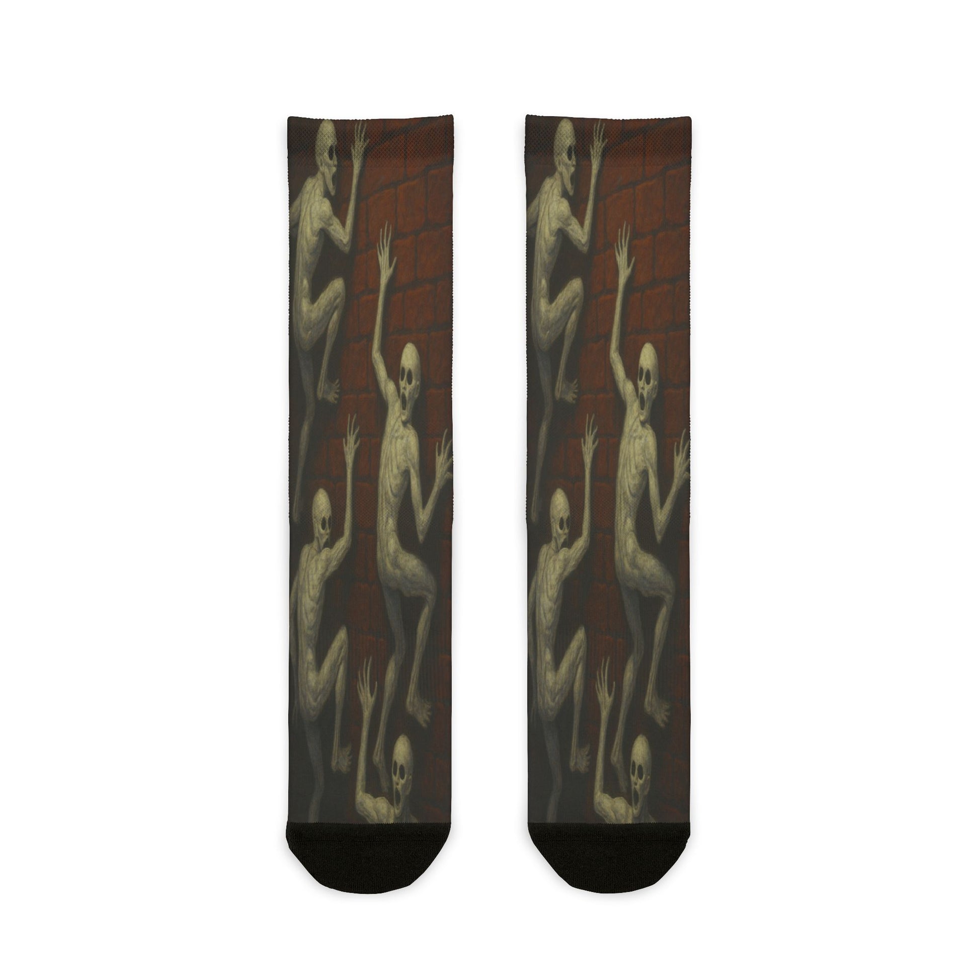 Pale Crawler Crew Socks are perfect for those who love mysterious and spooky creatures. These socks give off a dark and eerie vibe, making them ideal for Halloween enthusiasts and fans of paranormal phenomena. They add a touch of mystery and intrigue to everyday outfits, making them a great conversation starter. These socks are a must-have for anyone interested in cryptids and supernatural creatures.
