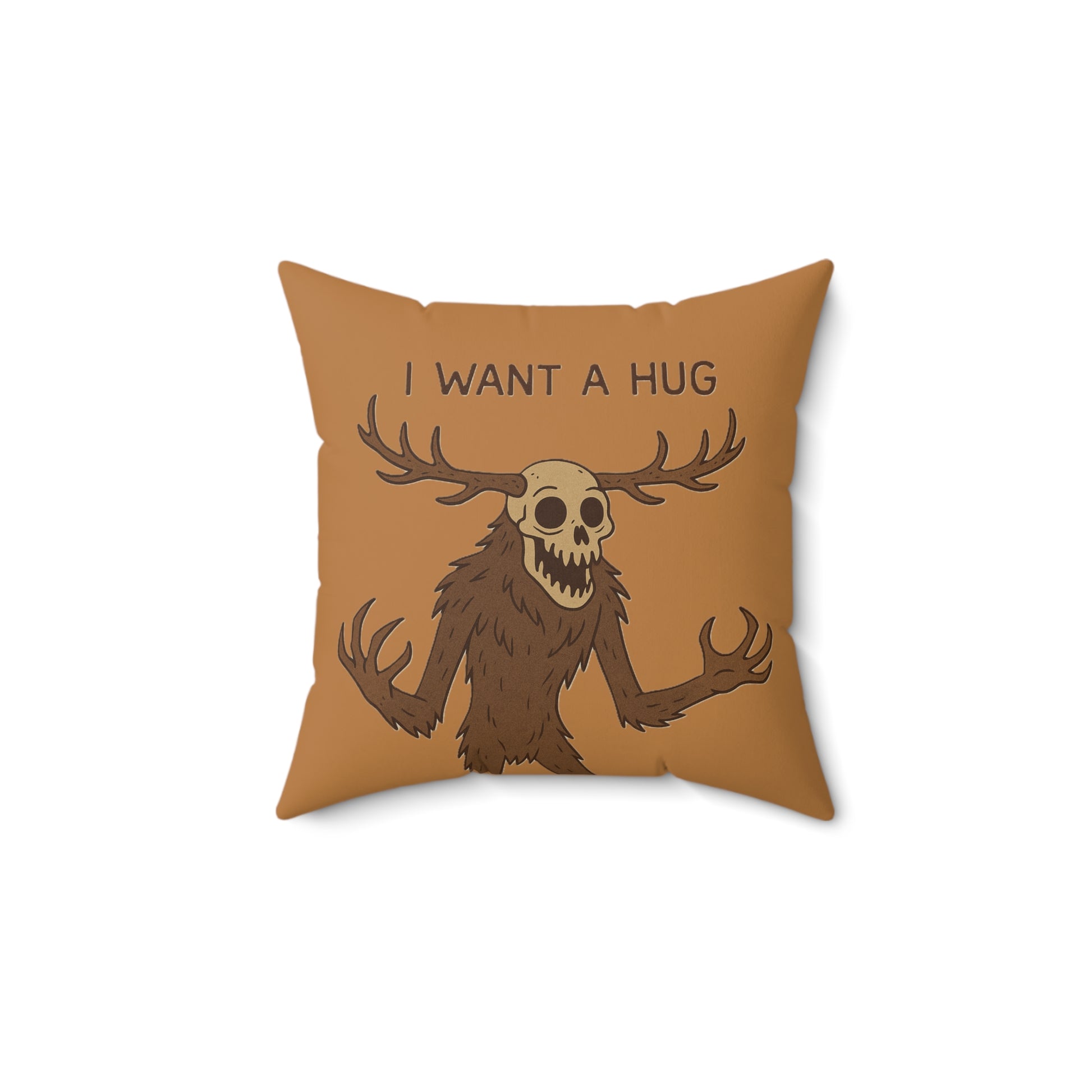 Transform your living space with this charming decorative Wendigo Hug pillow. The fun design featuring a whimsical Wendigo and the playful phrase 'I Want a Hug' adds a touch of humor and warmth to any room. Perfect for cozying up on the couch or brightening a reading nook, this pillow is sure to spark joy and conversation. Ideal for animal lovers, fans of quirky decor, or those who appreciate a bit of whimsy in their home. This pillow makes a fantastic gift for birthdays, holidays, or any occasion where you want to spread smiles and comfort.