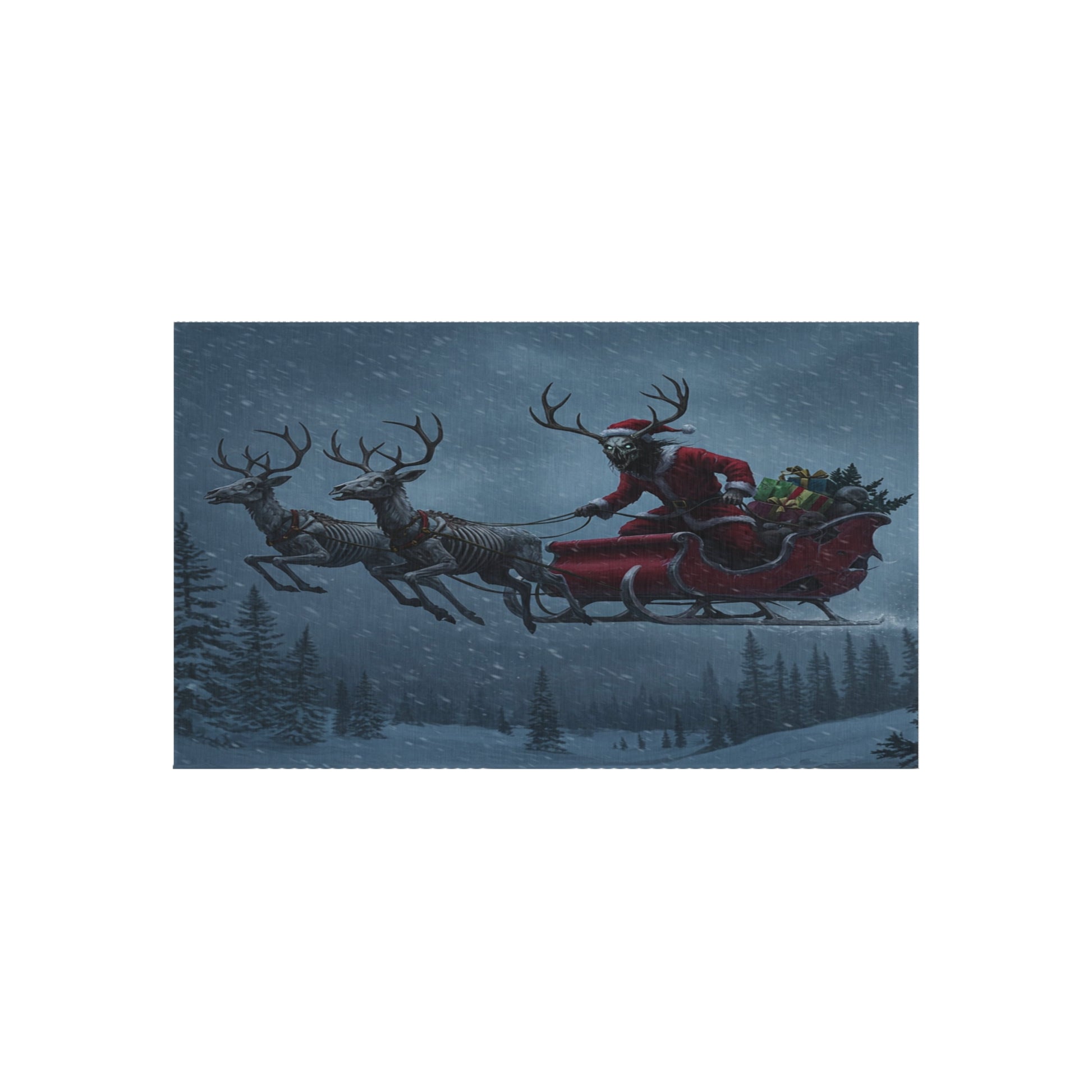 This Wendigo Santa Outdoor Rug brings a festive and whimsical touch to any outdoor space. Perfect for holiday gatherings or adding a touch of Christmas spirit to your porch or patio. The vibrant colors and non-slip bottom make it both fun and functional for any outdoor setting. Ideal for those who enjoy decorating their outdoor spaces for Christmas and other festive occasions.